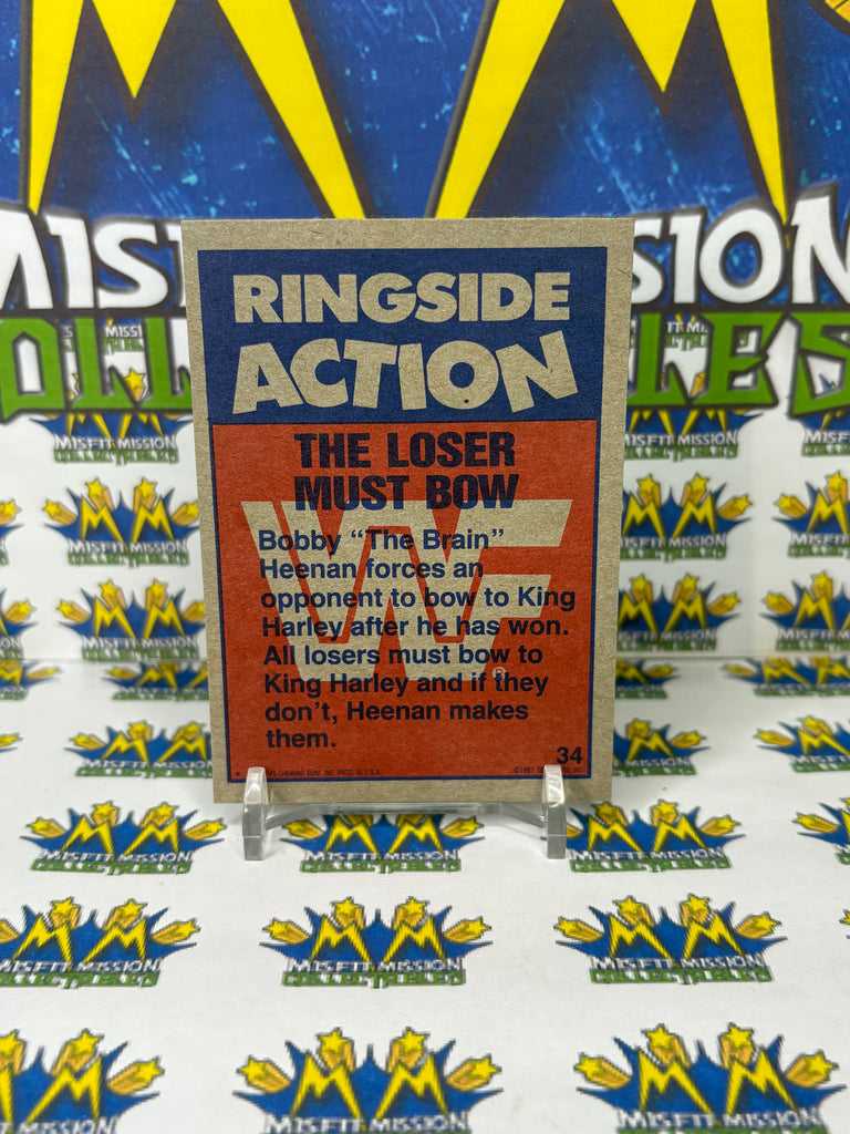 WWE/WWF TOPPS 1987 #34 The Loser Must Bow Trading Card, previously owned in good condition.