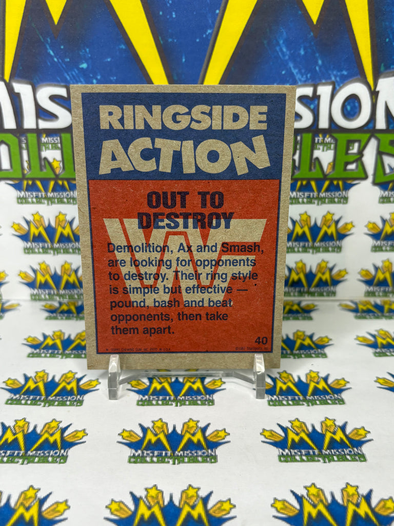 WWE/WWF TOPPS 1987 #40 Out to Destroy Demolition Trading Card, previously owned in good condition.