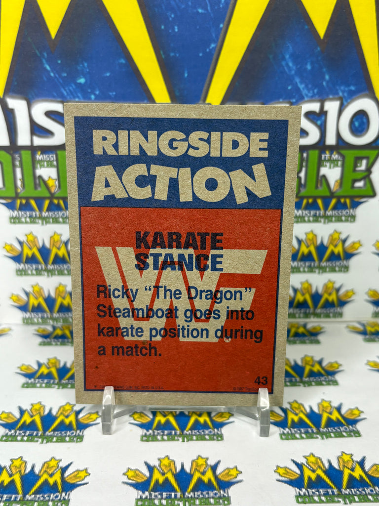 WWE/WWF TOPPS 1987 #43 Karate Stance Ricky Steamboat Trading Card, previously owned in good condition.