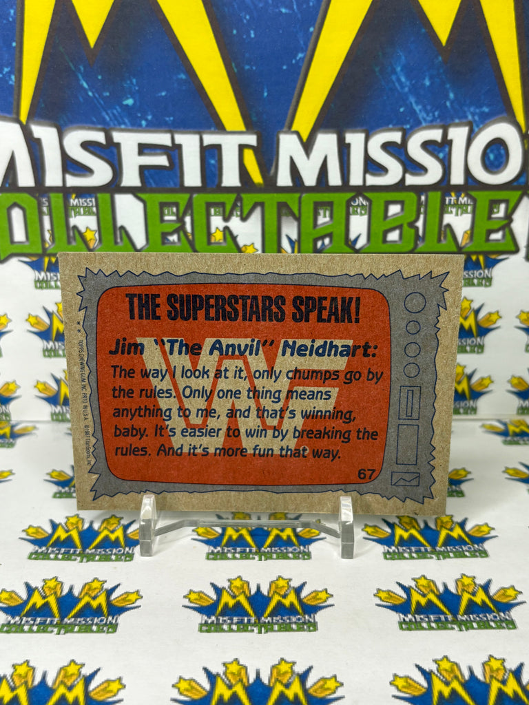 WWE/WWF TOPPS 1987 #67 Jim The Anvil Neidhart Trading Card, previously owned in good condition.