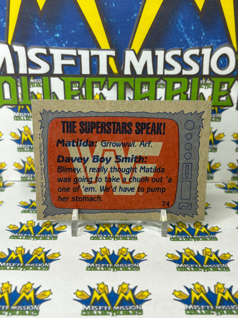WWE/WWF TOPPS 1987 #74 Matilda & Davey Boy Smith Trading Card, previously owned in good condition.