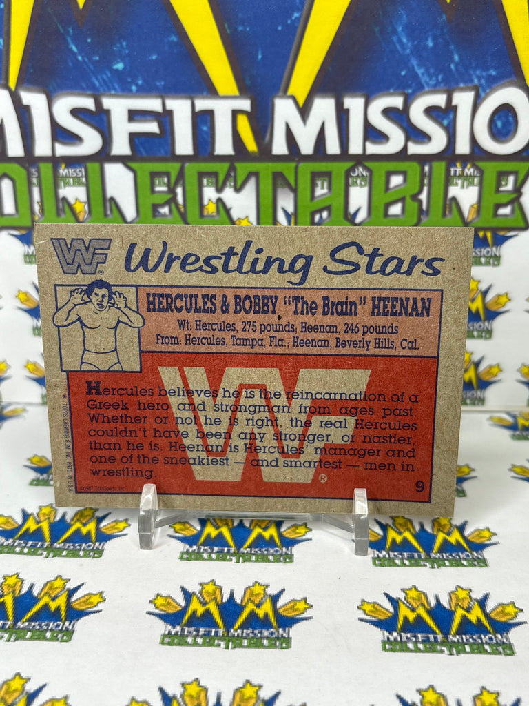 WWE/WWF TOPPS 1987 #9 Hercules & Bobby The Brain Heenan Trading Card, previously owned in good condition.