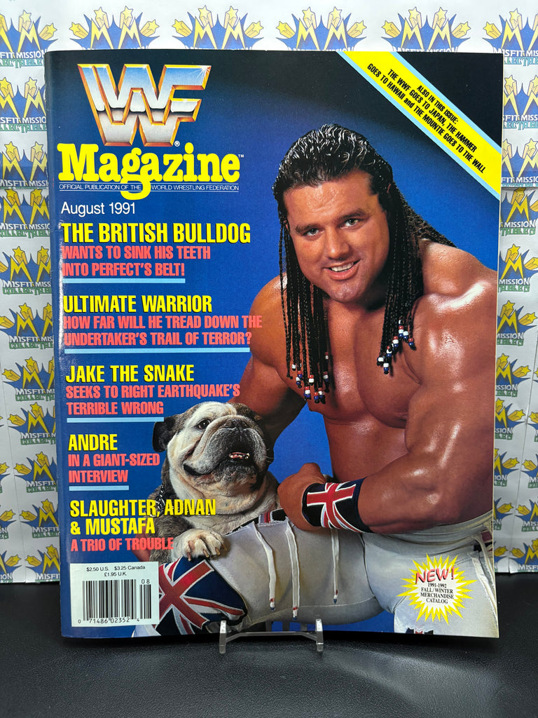 WWE WWF Magazine August 1991 The British Bulldog Cover, previously owned in very good condition.