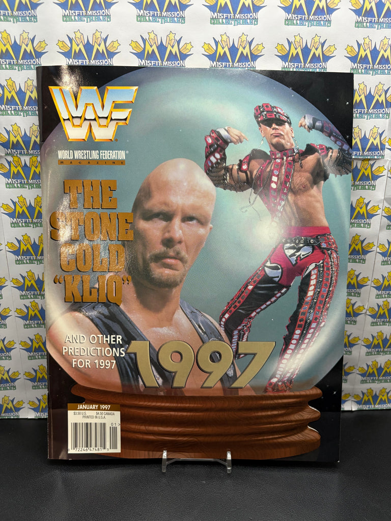 WWE WWF Magazine January 1997 Stone Cold Steve Austin Shawn Michaels Cover, previously owned in very good condition.