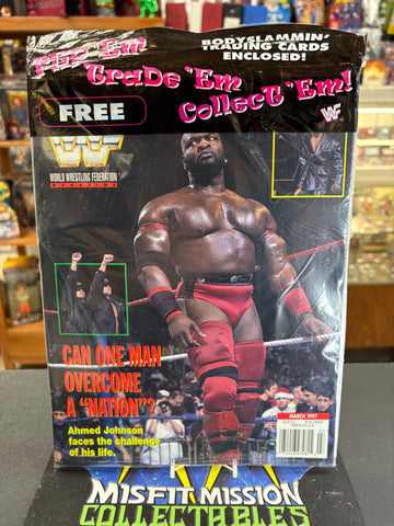 WWE WWF Magazine March 1997 Ahmed Johnson Cover, previously owned in very good condition. This magazine comes in the original mailing sleeve.