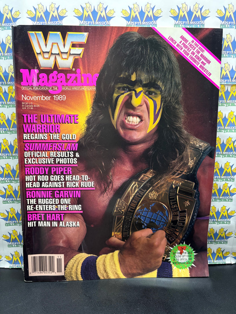 WWE WWF Magazine November 1989 Ultimate Warrior Cover, previously owned in very good condition.