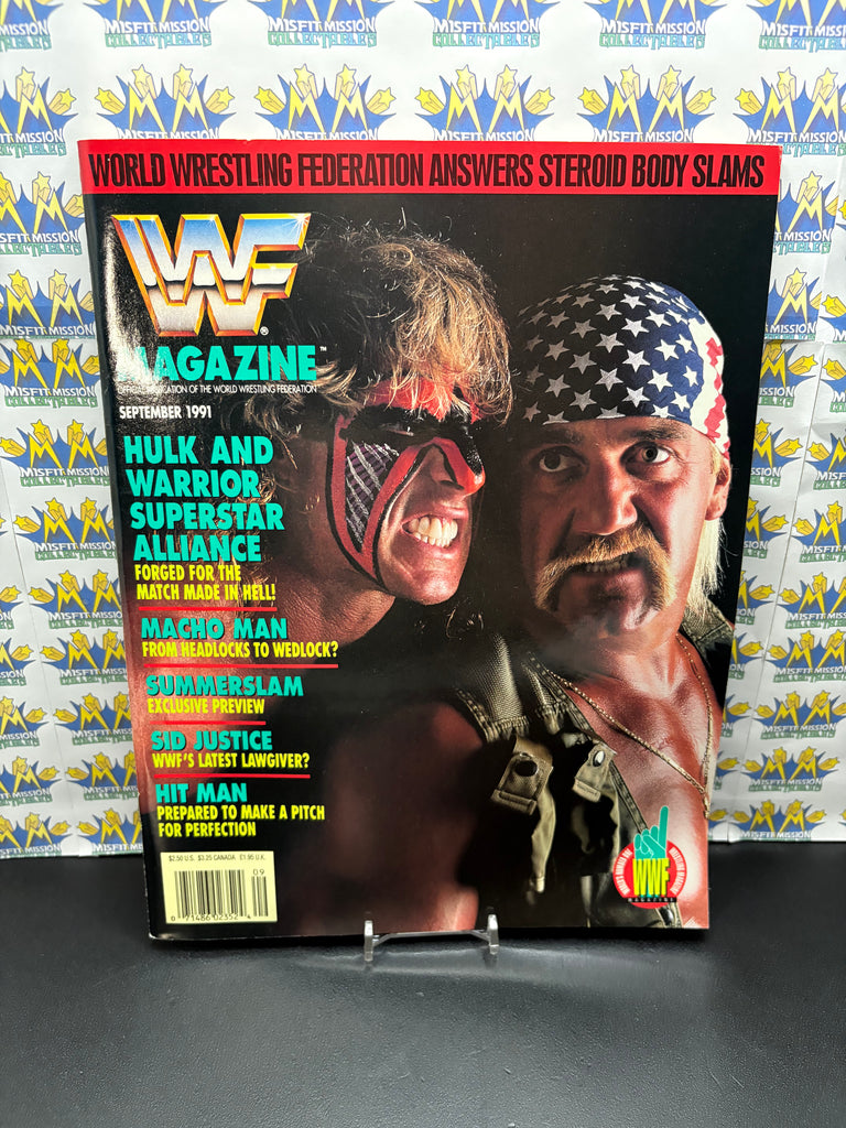 WWE WWF Magazine September 1991 Ultimate Warrior Hulk Hogan Cover, previously owned in very good condition.