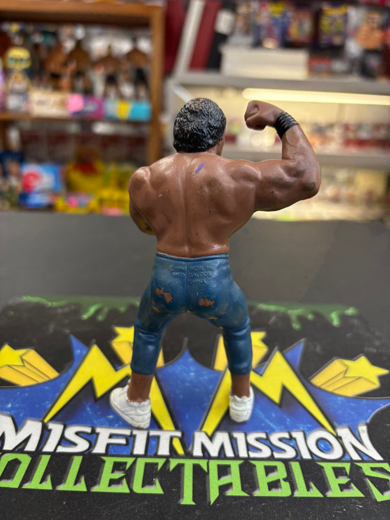 1990 WCW Galoob Ron Simmons Figure, previously owned in good condition. There is some obvious paint wear shown in the pictures.