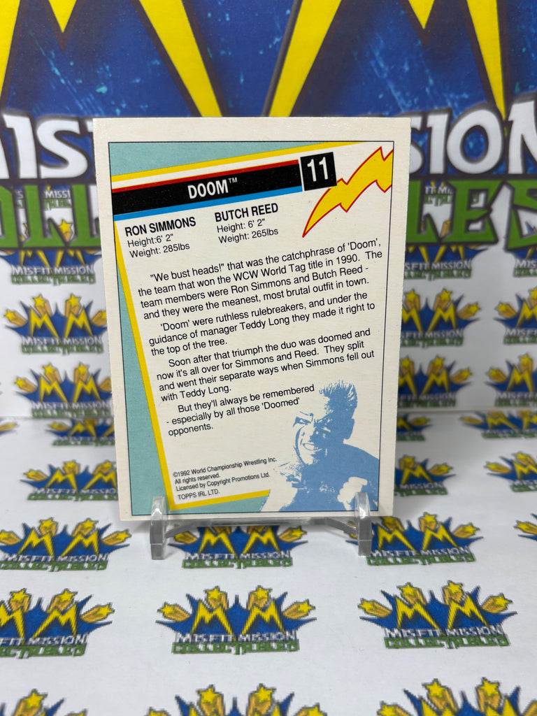 1992 TOPPS WCW UK Exclusive Doom #11 Trading Card. This card was originally issued in the United Kingdom by Topps Trading Cards. In like new condition and makes a perfect addition to any collection!