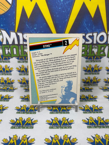 1992 TOPPS WCW UK Exclusive Sting #2 Trading Card. This card was originally issued in the United Kingdom by Topps Trading Cards. In like new condition and makes a perfect addition to any collection!