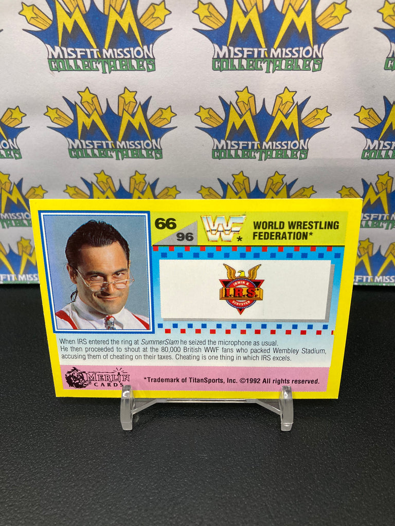 1992 WWE WWF Merlin Gold Series 2 Irwin R. Schyster of Money Inc. #66 Trading Card. This card was originally issued in the United Kingdom by UK based Merlin Publishing, in like new condition and makes a perfect addition to any collection!