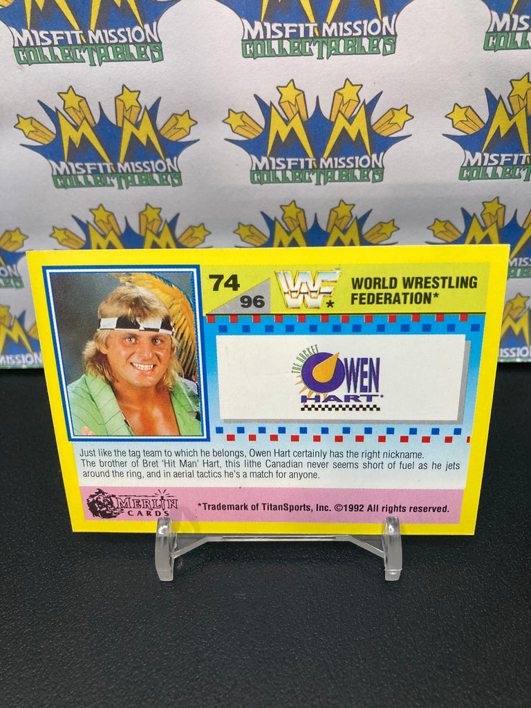 1992 WWE WWF Merlin Gold Series 2 The Rocket Owen Hart of High Energy #74 Trading Card. This card was originally issued in the United Kingdom by UK based Merlin Publishing, in like new condition and makes a perfect addition to any collection!