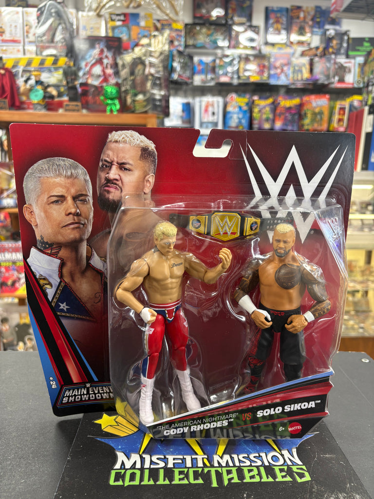WWE Main Event Showdown Series 24 Cody Rhodes vs Solo Sikoa Figure, new in package.