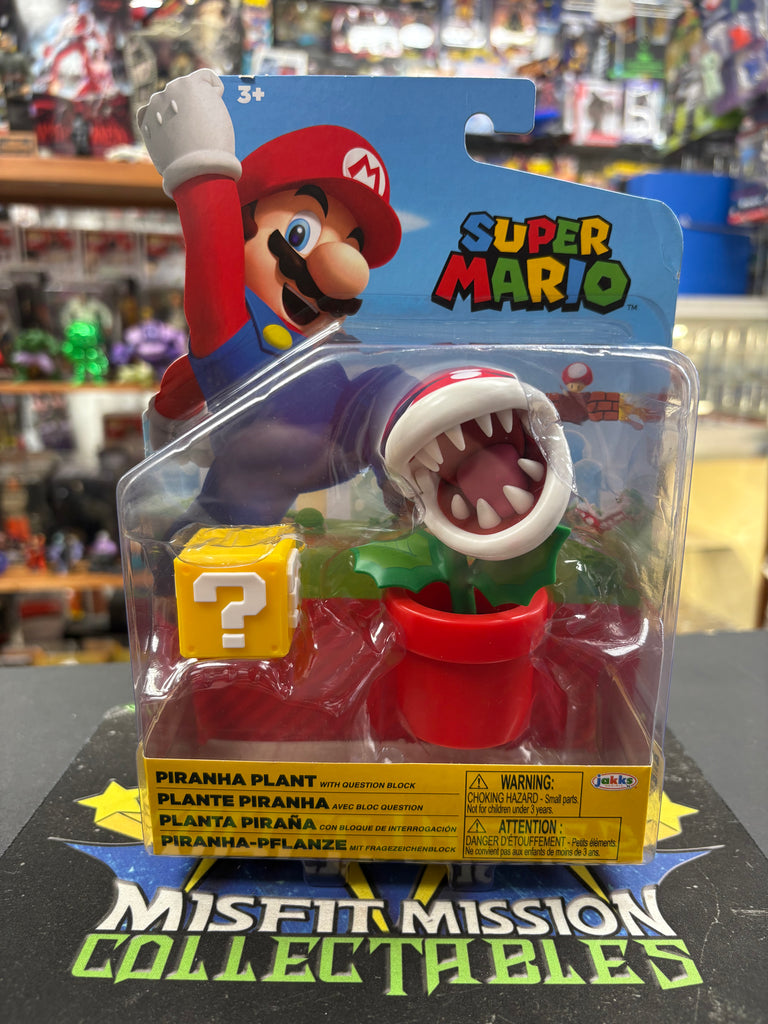 Jakks Nintendo Super Mario Piranha Plant with Question Block Figure, new in the package.