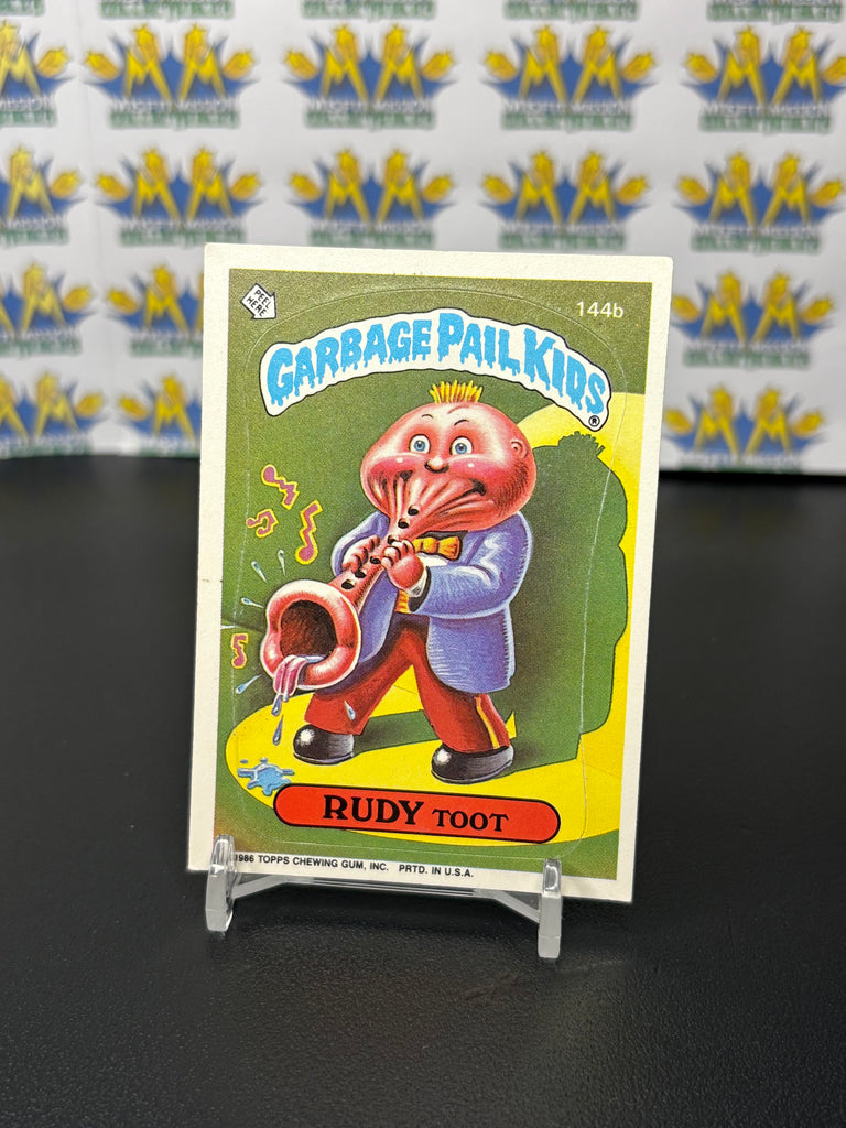 Vintage TOPPS 1986 Garbage Pail Kids Rudy Toot Sticker Trading Card, previously owned in good condition.