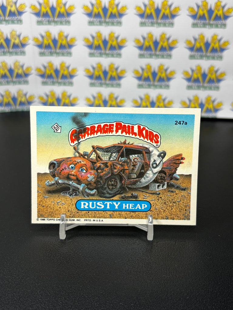 Vintage TOPPS 1986 Garbage Pail Kids Rusty Heap Sticker Trading Card, previously owned in good condition.