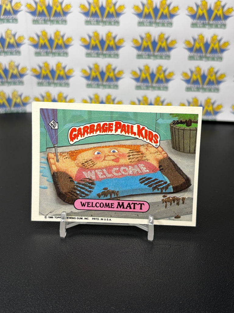 Vintage TOPPS 1986 Garbage Pail Kids Welcome Matt Sticker Trading Card, previously owned in good condition.