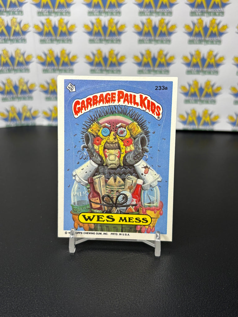 Vintage TOPPS 1986 Garbage Pail Kids Wes Mes Sticker Trading Card, previously owned in good condition.